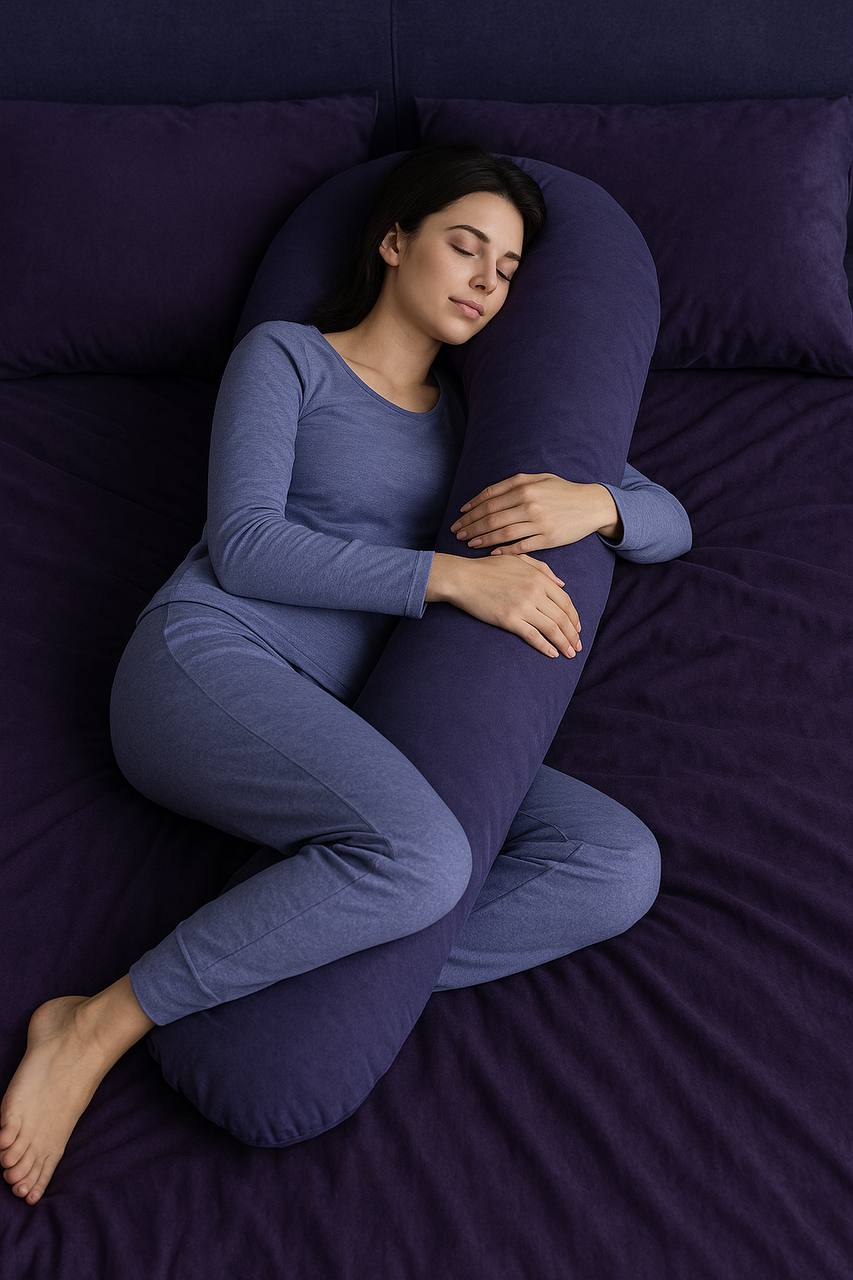 This G-shaped pillow completely changed my sleep during pregnancy. Supports belly, back and hips perfectly.
